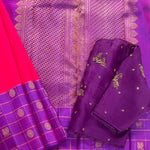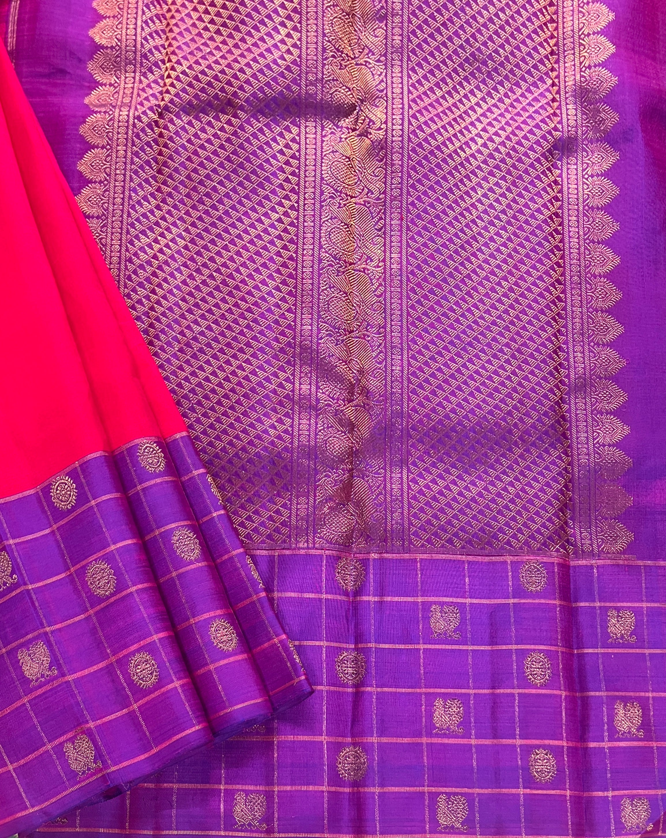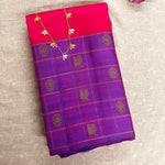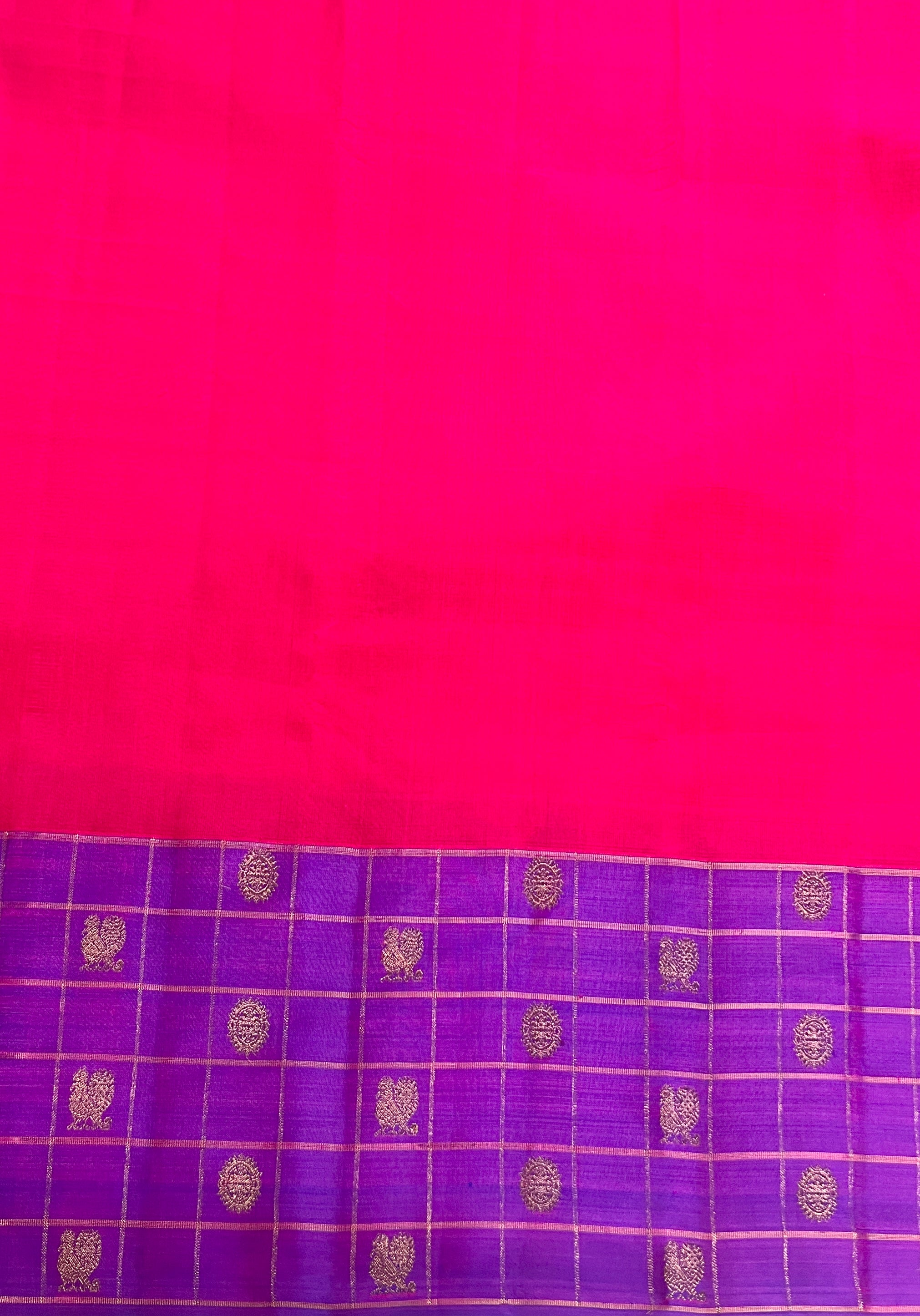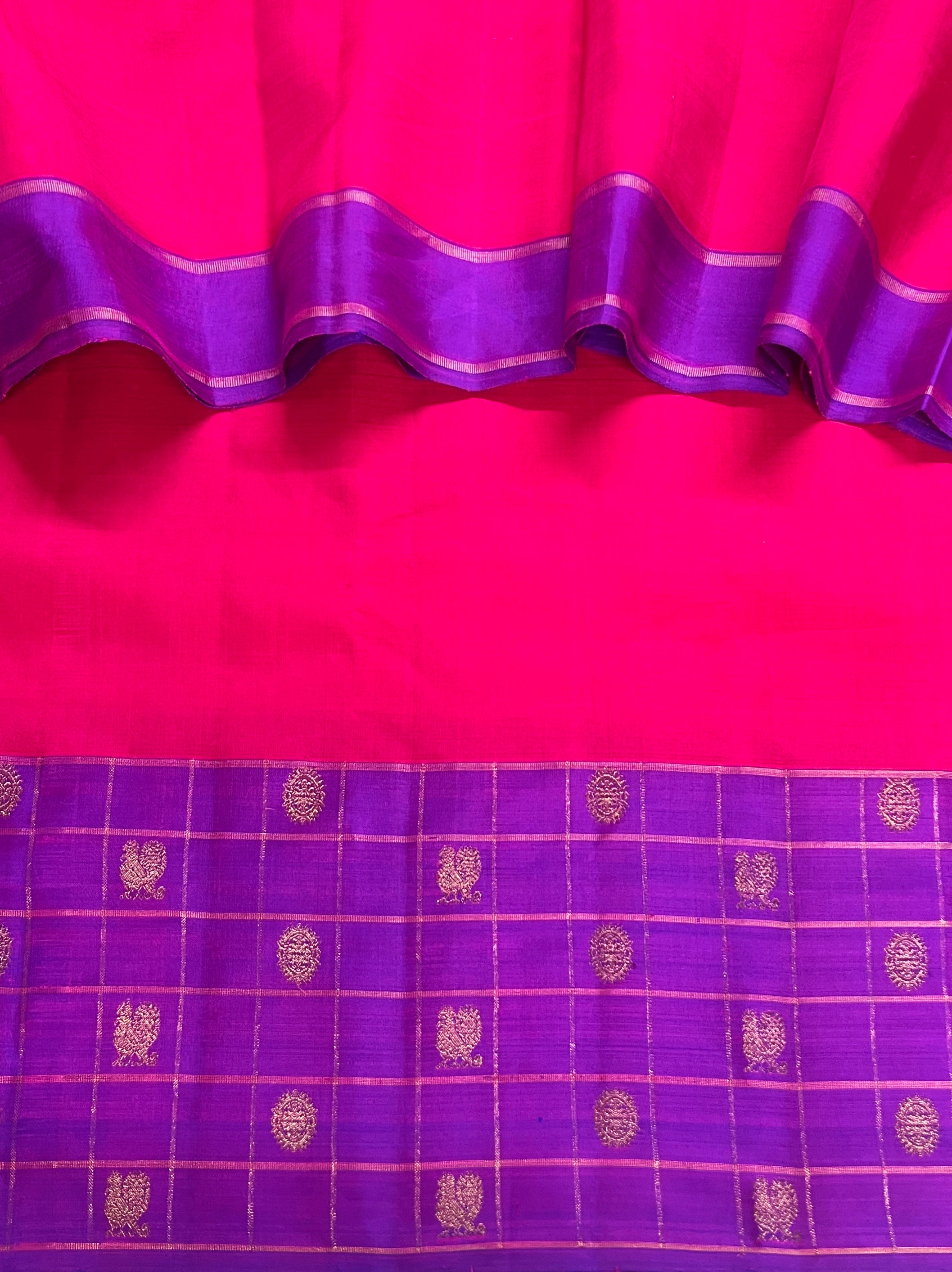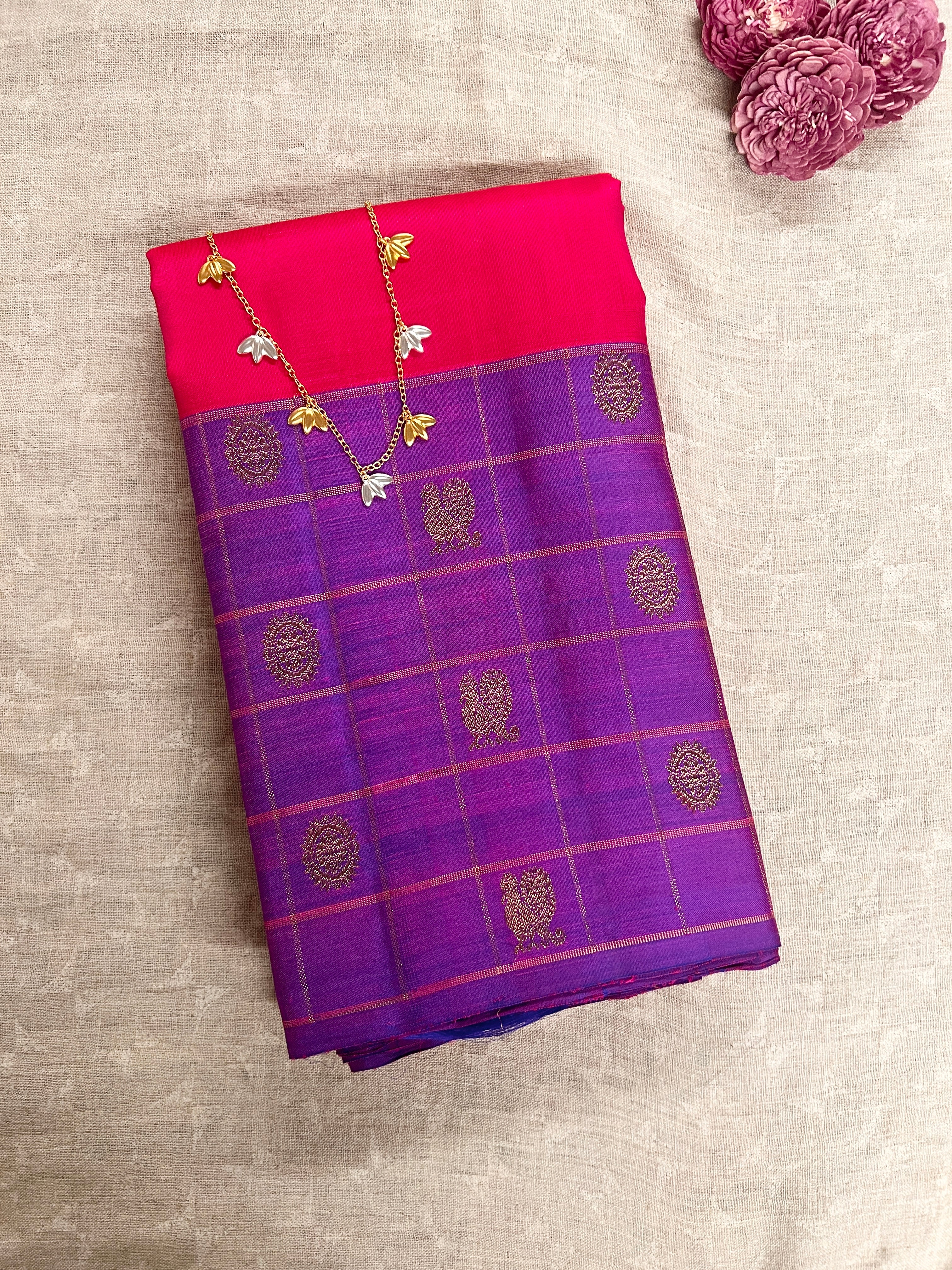 • Border in purple adorned with alternating checks featuring Annam and Rudraksha motifs.