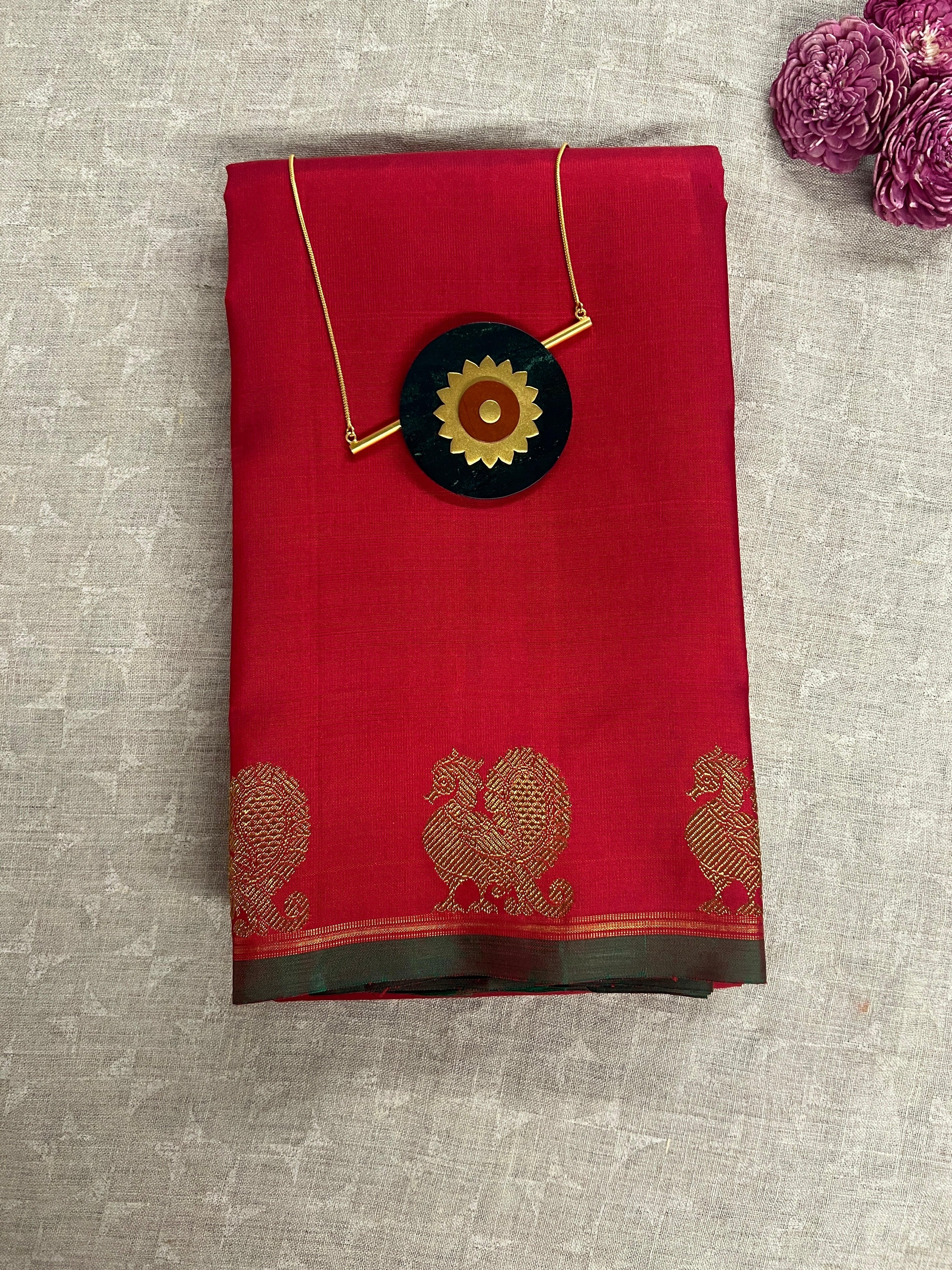- Pure Kanchipuram silk with luxurious texture and rich tradition.